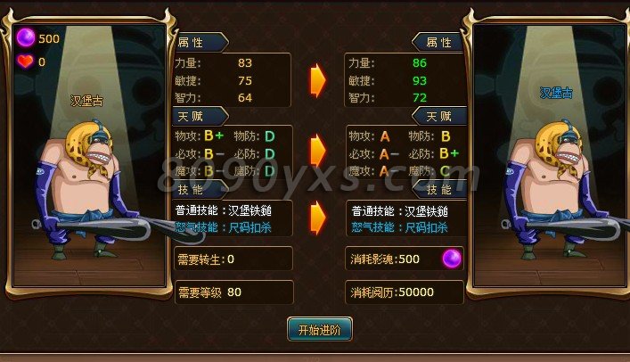 网页游戏热血海贼王汉堡古进阶伙伴是这次刚刚出来的,这个伙伴进阶前后,属性天赋技能都有怎样的变化呢?