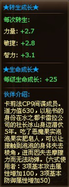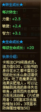 转生成长:每次转生力量+2.5,敏捷+2.4,智力+3.1;生命成长:每级生命成长+20.