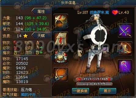 ¡¡¡¡Îï¹¥17145£¬±Ø¹¥20502£¬Ä§¹¥9439£¬Îï·À12623£¬±Ø·À13694£¬Ä§·À13819.
