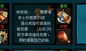 铁板烧:需要香吉士好感度25级,强化戒指可提高技能伤害。