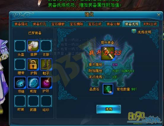 3. 洗炼可获得该装备基础属性的附加值