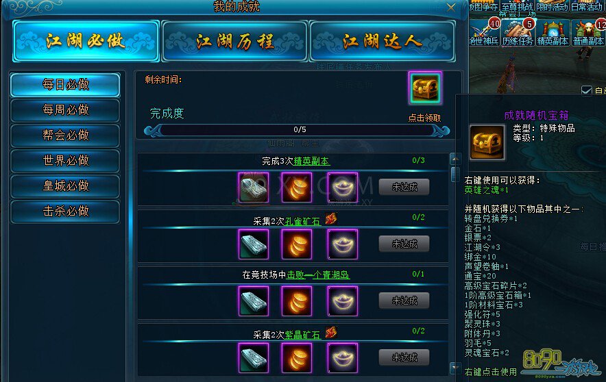 完成5个任务后的奖励: 成就随机宝箱 3