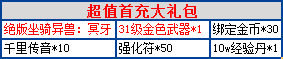 活动内容:活动时间内进入排行榜,结束后即可按相应排行领取奖励。(只有当玩家坐骑等级达到雷虎(5级)时方可入榜。)