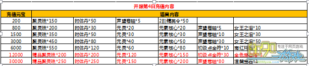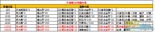 活动规则:活动期间,每个角色每天进行充值达200、800、1500、3000、6000、12000、30000元宝后,即可领取对应大礼,机不可失!