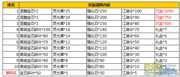 活动内容:活动时间内进入排行榜,结束后即可按相应排行领取奖励。(玩家根骨提供战斗达到14500方可进入榜单)