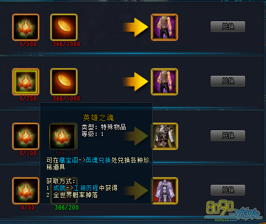 搜索"8090网页游戏"在九鼎记里面, 很多珍贵的道具都是打不到也买不到的, 只有玩家慢慢收集材料进行兑换才可以,那么今天说到就是珍贵材料之一英雄之魂的获取方法以及兑换奖励介绍。
