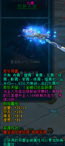 九霄如何飞行的问题,其实就是视觉效果而已,玩家是站在坐骑上御剑飞行的,但是实际上还是无法穿越地形,只是视觉上是飞行的,但是形态上不是。九霄坐骑技能是当主任攻击出现致命效果时候,有90%的几率提升主人的10%的所有攻击力,持续10秒。