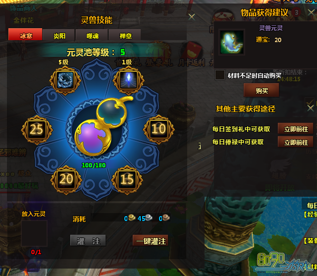 首先九鼎记灵兽技能需要玩家使用灵兽元灵进行灌注才会激活,技能一共分为4类,每类技能有5个,玩家需要按顺序使用灵兽元神灌注到一定等级才会开放解锁,然后玩家可以自行选择技能给灵兽携带。