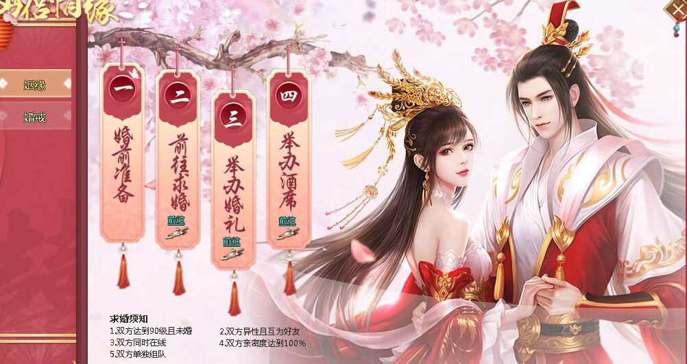 结婚前的准备共分为五部分别是:1.双方都达到了90级且未婚,2.双方异性并且是好友,3.双方同时在线,4.双方亲密度达到400,5.双方单独组队,这就是结婚前的准备哦!若玩家是结婚状态,则不能同其他异性进行结婚操作哦!