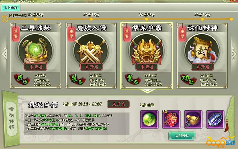 好啦!今天的帮派争霸的介绍就说到这里了!有兴趣的玩家赶紧在活动时间参加吧!(本文由玩家提供,文章观点不代表官方意见,仅供参考!)