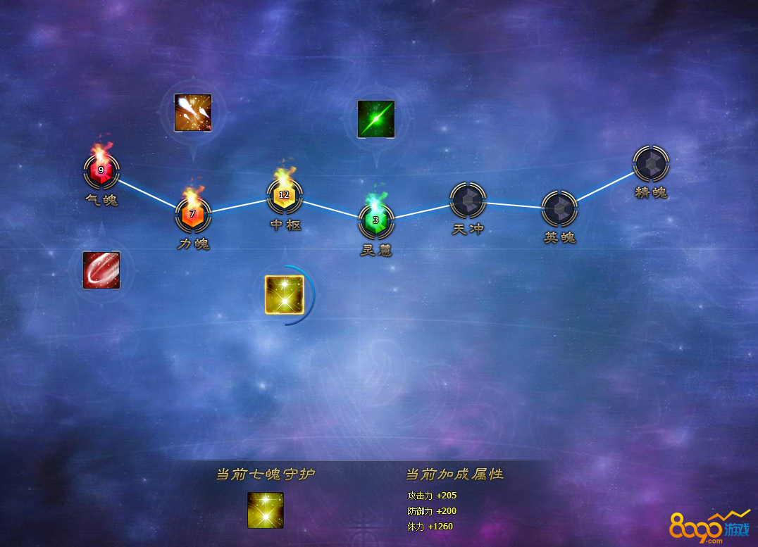 搜索"8090网页游戏"江湖中的七魄会在玩家8级时开启,玩家每升10级都会开启一魄,游戏中一共有七魄。玩家在开启一魄的时候需要对他进行升级才能进行守护。