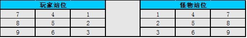 以下为玩家和怪物的战斗站位示意图,根据数字的编排,玩家就可以了解到面对各种怪物,应该如何去调整自己的阵型。(一个阵型打通整个副本的时代已经一去不复返了)