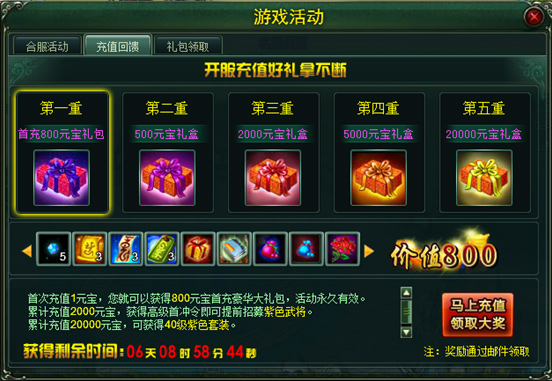首充豪华大礼包(价值800元宝)