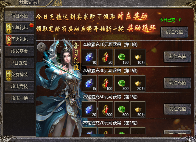 【活动内容】:活动期间充值可额外获得圣火令,可用于兑换圣火令礼包
