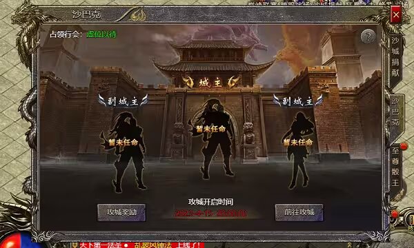 在游戏中,玩家开服的第7天的晚上20:00-20:30,将开启决战沙巴克活动,之后的开启时间为:每周的周三、周六晚上20:00-20:30开启决战沙巴克的活动,游戏规则:进攻方需要攻破城门和皇宫的城墙,才可以进入到皇宫中,进攻方无法通过皇宫宫门进入到皇宫中,但是可以通过皇宫的密道潜入到皇宫中,帮助队友攻城,当城门被攻破的时候,进攻方和防守方的出生点会发生变化,小编建议防守方提前进入到城池中,防守方可以在活动开始前召唤护卫和弓箭手协助自己守城,当皇宫只剩下一个行会的玩家之后,就算占领皇宫成功,攻城开始5分钟之后,才能变换占领方,当活动结束之后,最后占领皇宫的行会就是沙巴克霸主行会了,玩家们会获得丰厚的道具和称号奖励,开服前5次参加决战沙巴克活动会获得额外的奖励,在活动中,活动区域内会有泡点积分,玩家击败或者被击败的时候,都可以获得积分,积分达到一定的指数的时候,就可以领取奖励了,活动结束之后,还会有个人排名,系统会根据排名发放个人奖励。