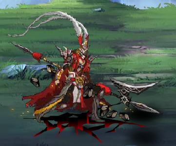 第三个O技能:召唤吕布。战姬召唤吕布从天而降对面前敌人造成践踏伤害。
