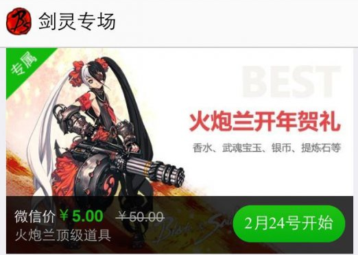 非常超值有木有!大家赶快去微商店购买剑灵火炮兰开年贺礼礼包吧!