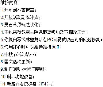 9月25日,00:00~12:00,剑灵将进行全区更新,更新内容如下: