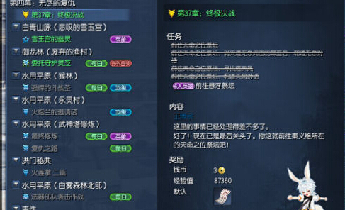 完成36章剧情后,可以从面目全非的江流市直接传送到天命之位祭坛,开始37章任务"终极决战"。天命祭坛,右边,面目全非的江流市,24人。