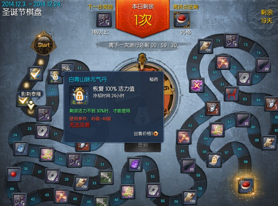 当然了没有心悦会员的小伙伴,在签到圣诞节棋盘的时候要注意一下元气丹要留着,到时候给小号升级能获取更多的奖励加成的。一天两罐疲劳还是很爽的。