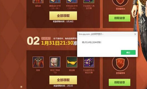 1月24号准点在线奖励的领取,活动一般都是10点或者12点开始,所以现在领不了也是正常的哦,过一会应该就可以了~