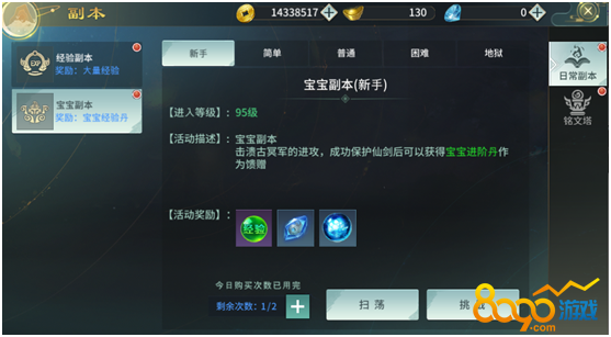 副本入口: 在游戏界面上找到“副本”或者“日常”选项,然后选择“宝宝”副本。