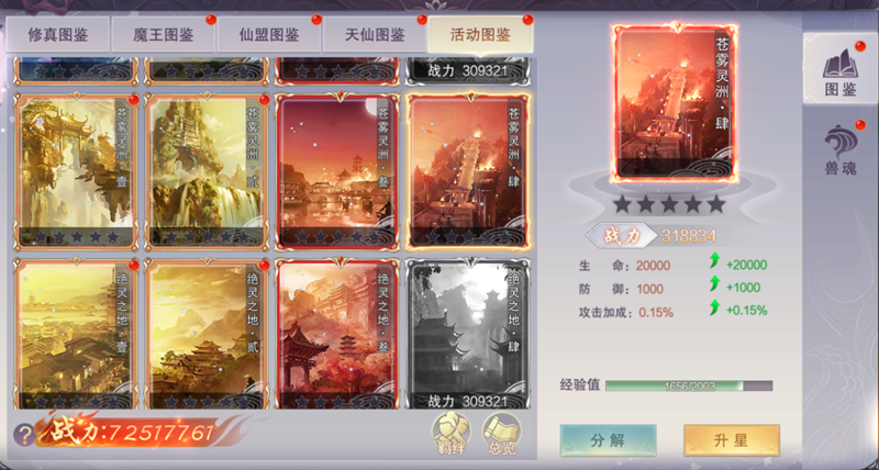 图鉴的收集不仅具有观赏价值,更能为仙友们带来丰厚的属性加成。无论是攻击、防御、破甲还是生命等属性,都能通过收集图鉴得到提升。此外,图鉴还可以进行升星操作,进一步提升其基础属性,让仙友们的战力更上一层楼。