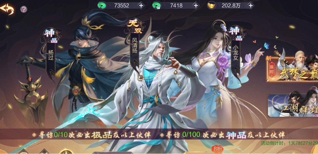 搜索"8090网页游戏"今天是礼拜六,各位仙友们期待已久的日子终于到来了!每隔两周,游戏内就会推出一次全新的侠客寻访活动,让玩家们有机会结识并招募到心仪的侠客。然而,许多新手玩家可能对这个活动还不太了解,不知道该如何参与和获取侠客。那么,接下来就让我来为大家详细解析一下侠客寻访的玩法吧!