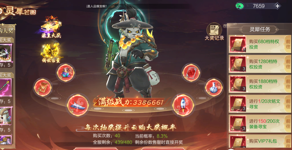 不过,需要注意的是,灵犀芒图中的大奖并不只有熊猫一个。但是,在这里我要特别提醒大家,除了熊猫之外,其他的大奖并不建议大家去追求。因为相对于熊猫来说,其他大奖的性价比并不高,除非你是一位实力雄厚的大佬,可以毫无顾忌地全部拉满。