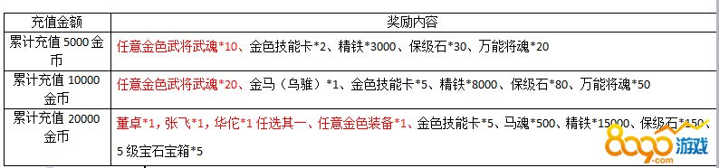 活动内容:三天累计充值达到指定金额,即可领取丰厚奖励,只能领取最高档。