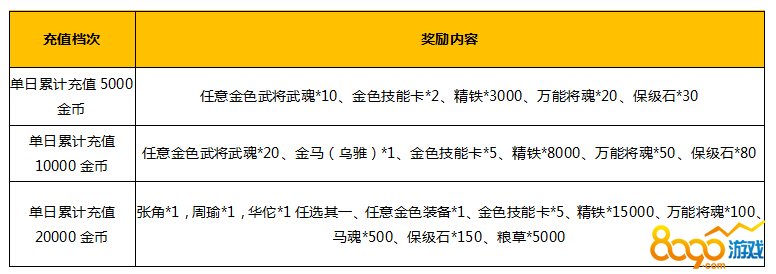 活动规则:单日累计充值达到指定金额,即可领取丰厚奖励,只能领取当天充值最高档。