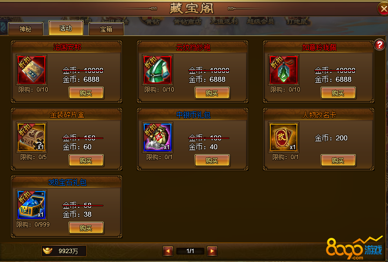 活动内容:活动期间藏宝阁活动商店出售红将闭月貂蝉专属装备。