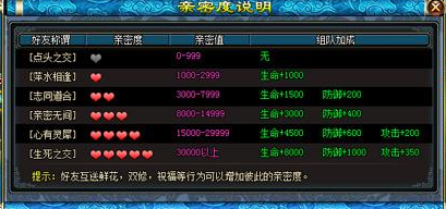 在《绝色唐门》中有一种独特的计算方式计算你的好友和你的亲密度,当你和好友经过互送鲜花、双修、祝福等行为增加你们之间的亲密度时,你们组队时的属性也会增多,亲密度分为六个阶段:点头之交、萍水相逢、志同道合、亲密无间、心有灵犀和生死之交了。