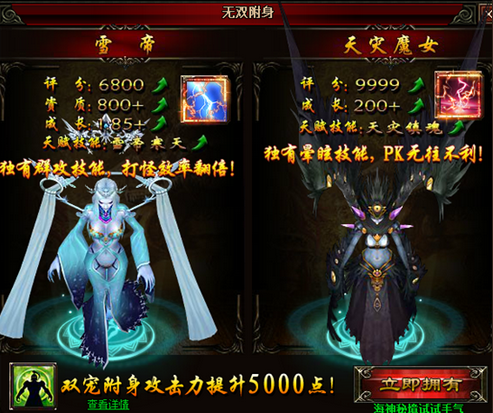 在游戏中,一开始玩家打开魂宠系统,系统就会推荐玩家购买一只雪帝,雪帝只能通过商城购买获得,只需999元宝就可以带回家。虽然比较贵但是完全物有所值,宠物有群攻能在前期弥补玩家群攻技能少的缺点相当实用。