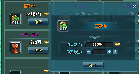 1、玩家进入创建角色进入游戏之后,可以在商城用金子购买至尊VIP