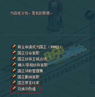 功勋值在人物属性里面查看,每杀一个敌国玩家就会获得一些功勋值,然后去王城大臣那里兑换经验,在最下面有兑换功勋值这个按钮,点击即可获取相应的经验即可。