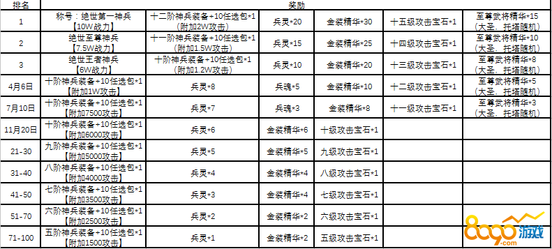 2. 活动内容:活动期间提升50000神兵战力即可上榜获得奖励