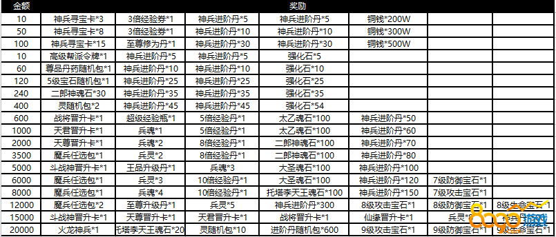 2. 活动内容:活动期间充值相应金额即可获得奖励