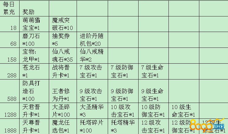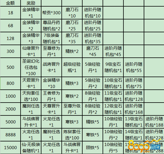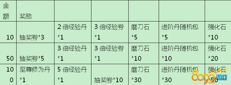 活动内容:活动期间内充值相应的金额即可获得对应的奖励