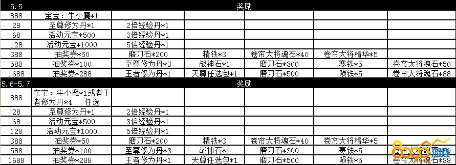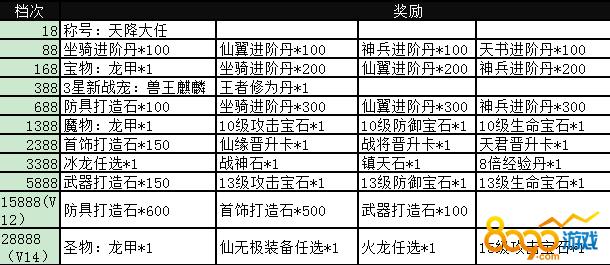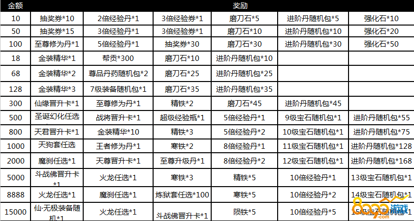2. 活动内容:活动期间充值数额达到一定金额即可获得对应档的奖励