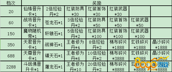 2. 活动内容:活动期间内,累计充值到相应的档次即可获得对应档次奖励。