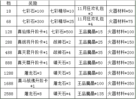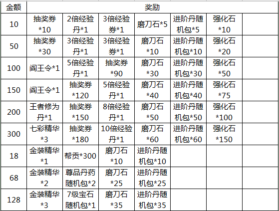 活动规则:活动期间,充值达到对应条件可领取丰厚奖励