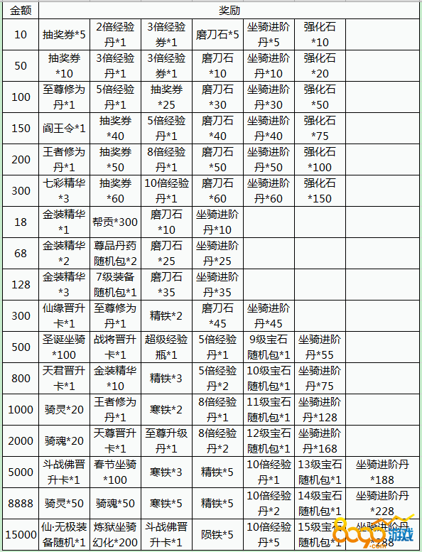 活动规则:活动期间,充值达到对应条件可领取丰厚奖励