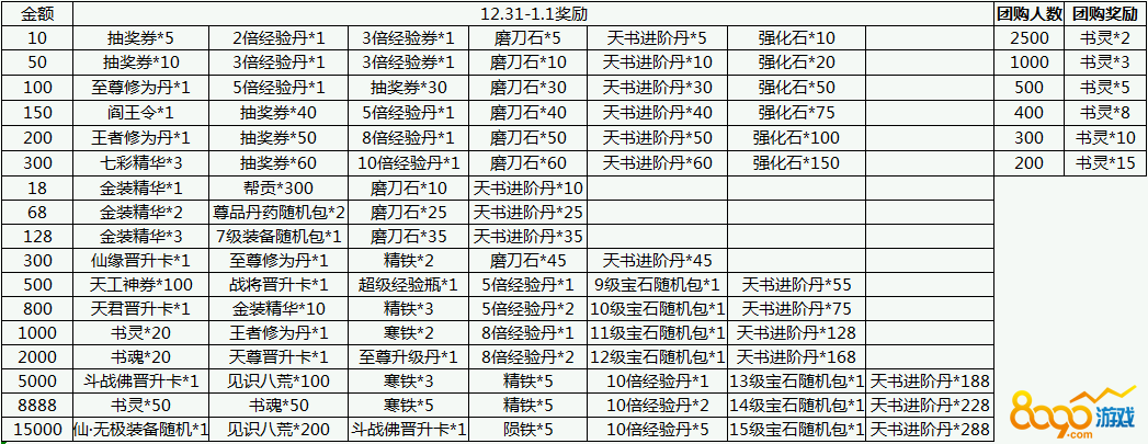 2. 活动内容:活动期间,玩家充值达到一定金额即可领取道具奖励。