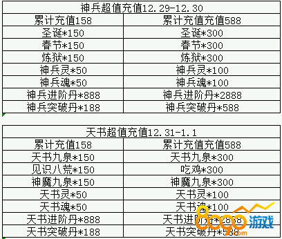 2. 活动内容:活动期间,玩家充值158、588即可领取道具奖励。
