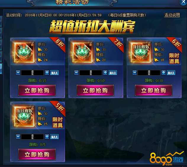 .活动内容:活动期间,玩家可在折扣商店内购买打折兽首碎片、兽魂、兽灵等道具。