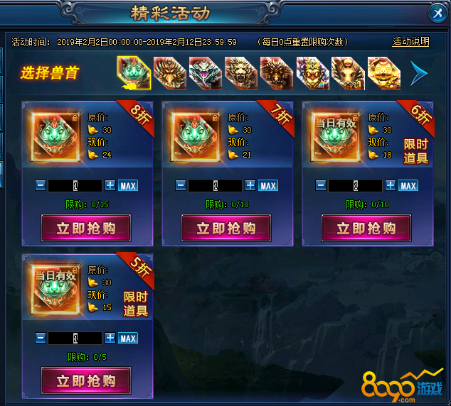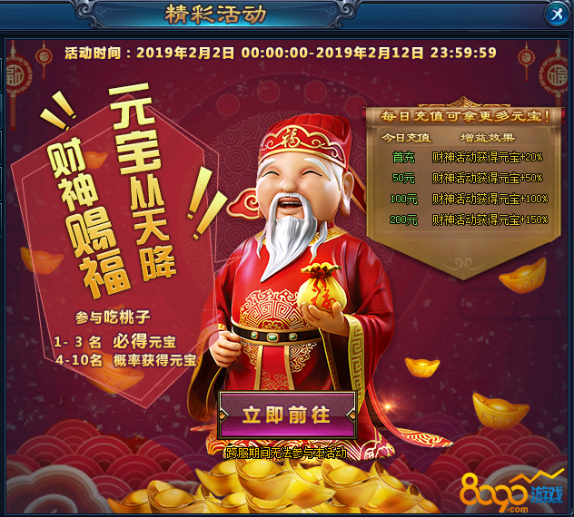 搜索"8090网页游戏"绝世仙王2月2日-2月12日活动