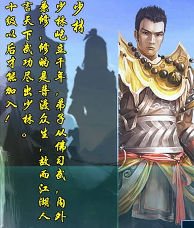 起立千年,弟子从佛习武,内外养修,修的是普渡众生,少林以血厚防高著称,主要加强自身属性,提高生存能力,神出鬼没的棍法可以使敌人头晕目眩,故而江湖人言“天下武功出少林”果然名不虚传也,属于持续生存型门派。