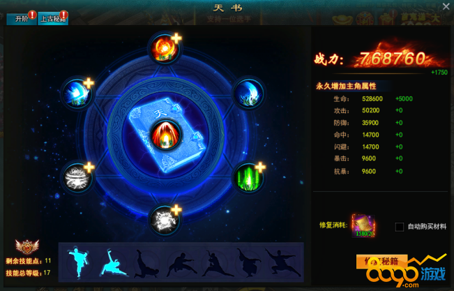 2. 可以消耗“上古秘籍残卷”对“上古秘籍”进行修复,每完成一页修复将获得1点秘籍技能点。