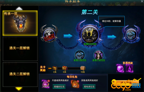 3. 只要在副本中存活30秒,即可通关,在副本死亡则算挑战失败。